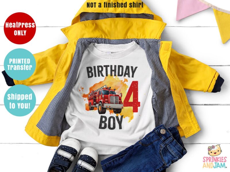 SKU: N/A Category: Image Transfers Tags: 4th birthday shirt, birthday boy, firefighter, fireman birthday, ready to press, sublimate transfer, sublimation, tshirt transfer, wholesale