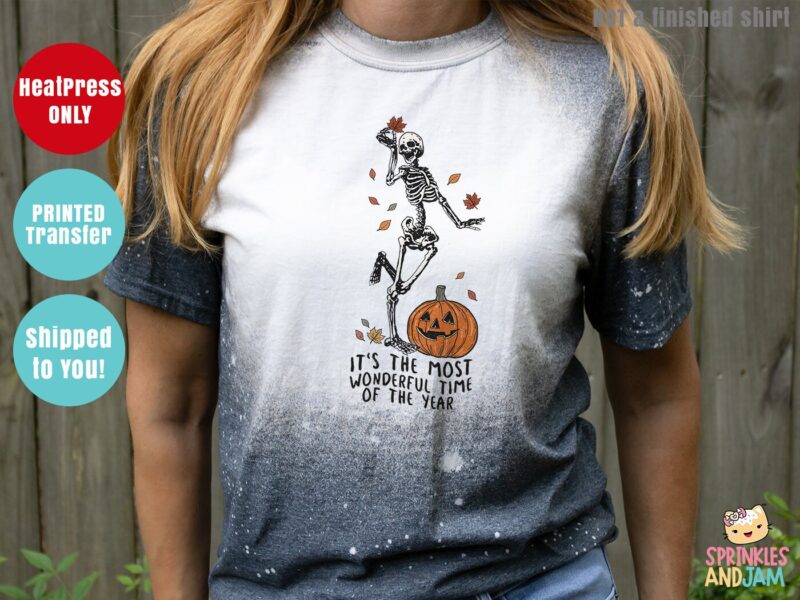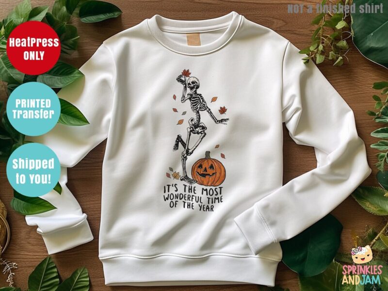 Halloween sublimation prints for shirts, funny skeleton Sublimation Transfer with a funny skeleton its the most wonderful time of the year, Ready to Press Sublimation Transfer